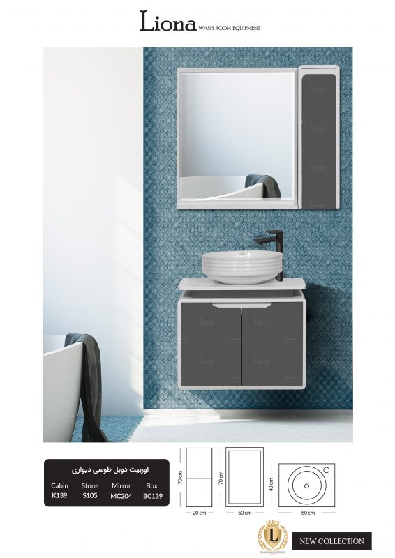 کابینت روشویی اوربیت دوبل طوسی دیواری