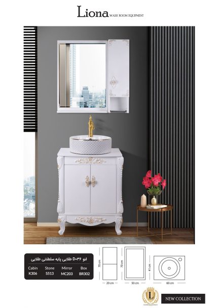 کابینت روشویی لنو D036 طلایی پایه سلطنتی طلایی