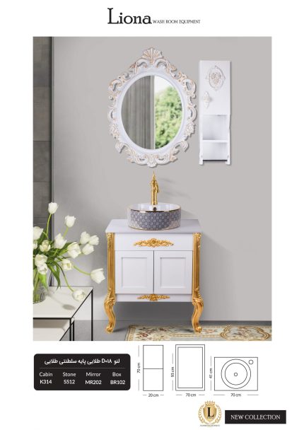 کابینت روشویی فلورا پایه سلطنتی طلایی