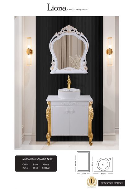 کابینت روشویی لنو نوار طلایی پایه سلطنتی طلایی