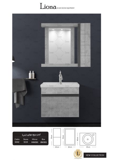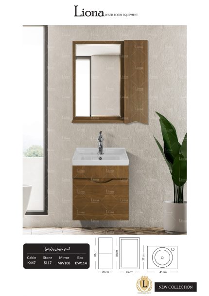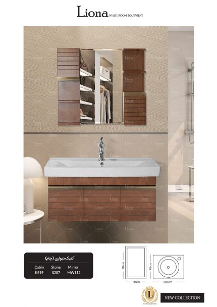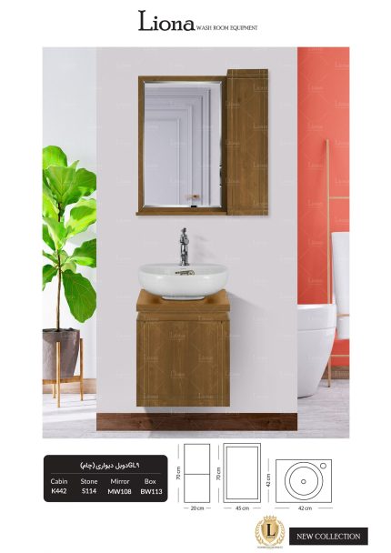 کابینت روشویی GL10 درب ریلی دیواری سفید آنتیک