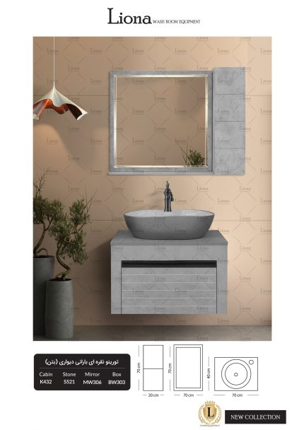 کابینت روشویی تورینو نقره ایی بارانی دیواری بتن