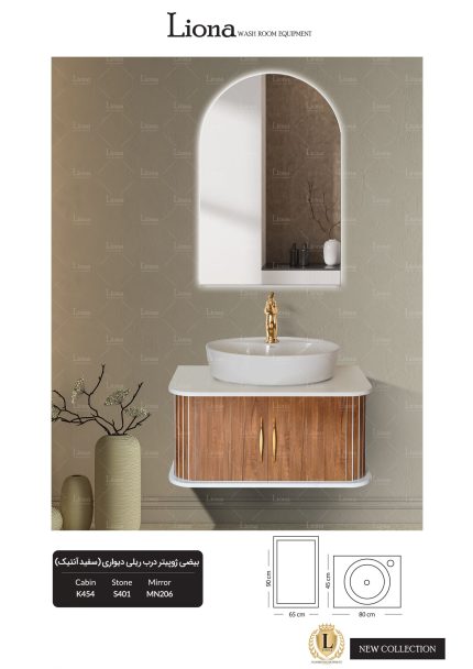 کابینت روشویی بیضی ژوپیتر درب ریلی دیواری سفید آنتیک