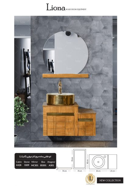 کابینت روشویی لنو طلایی ساده مربع کنار دیواری آنتیک