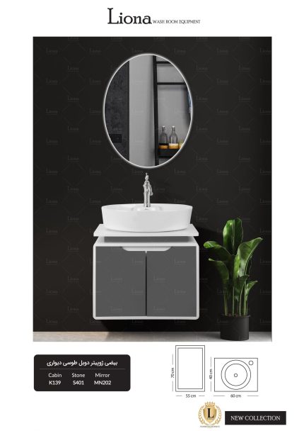 کابینت روشویی بیضی ژوپیتر دوبل طوسی دیواری