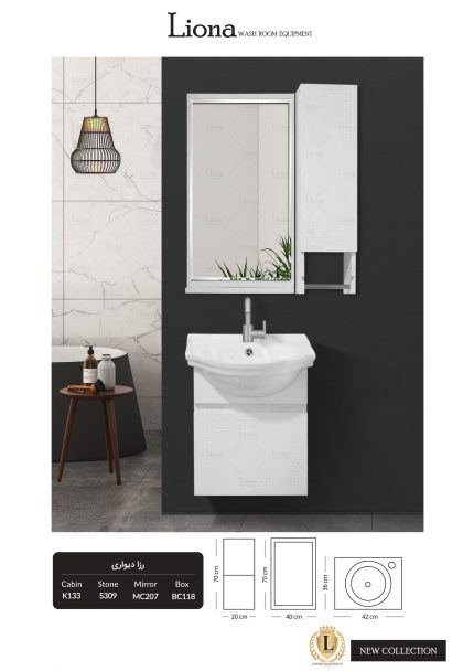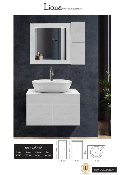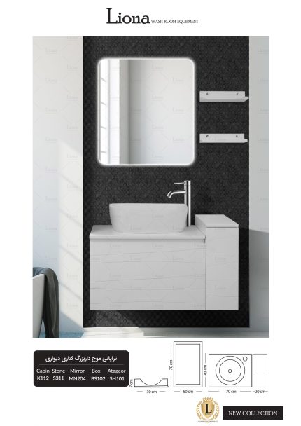 کابینت روشویی تراپانی موج دار بزرگ کناری دیواری