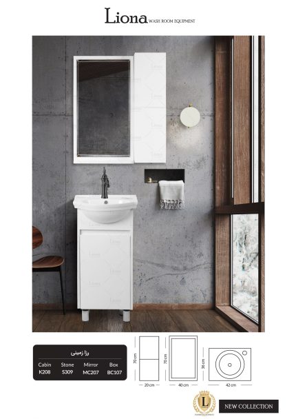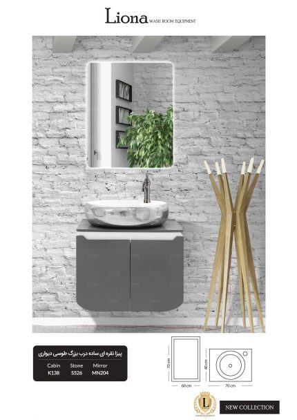 کابینت روشویی پیزا نقره ایی ساده درب بزرگ طوسی دیواری