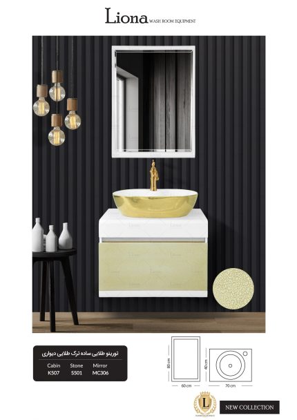 کابینت روشویی تورینو ساده ترک طلایی دیواری