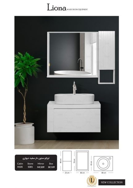 کابینت روشویی لیزانو ستون دار سفید دیواری
