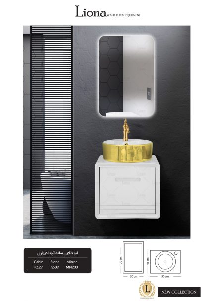 کابینت روشویی لنو طلایی ساده آویتا دیواری