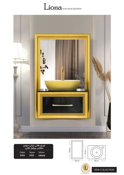 کابینت روشویی تورینو طلایی بارانی دیواری سلطنتی پروفیل طلایی