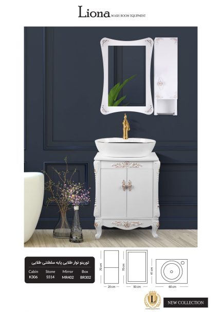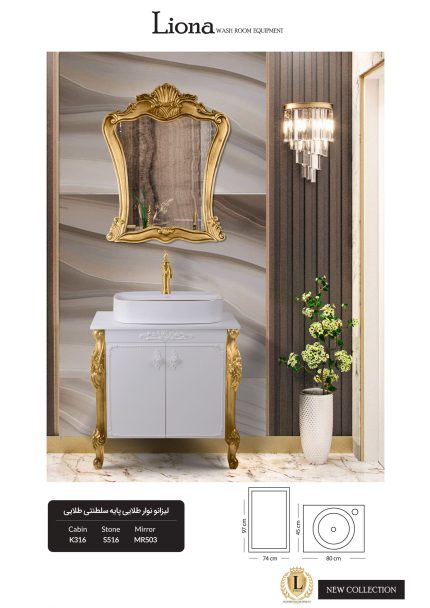 کابینت روشویی لیزانو نوار طلایی پایه سلطنتی طلایی