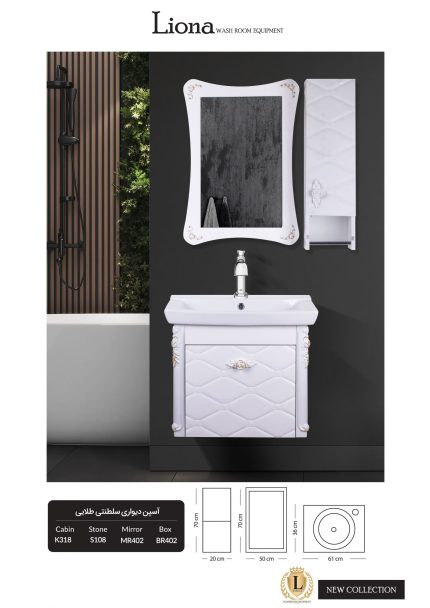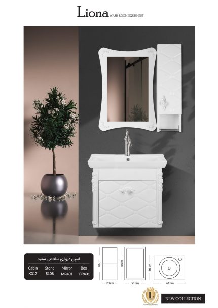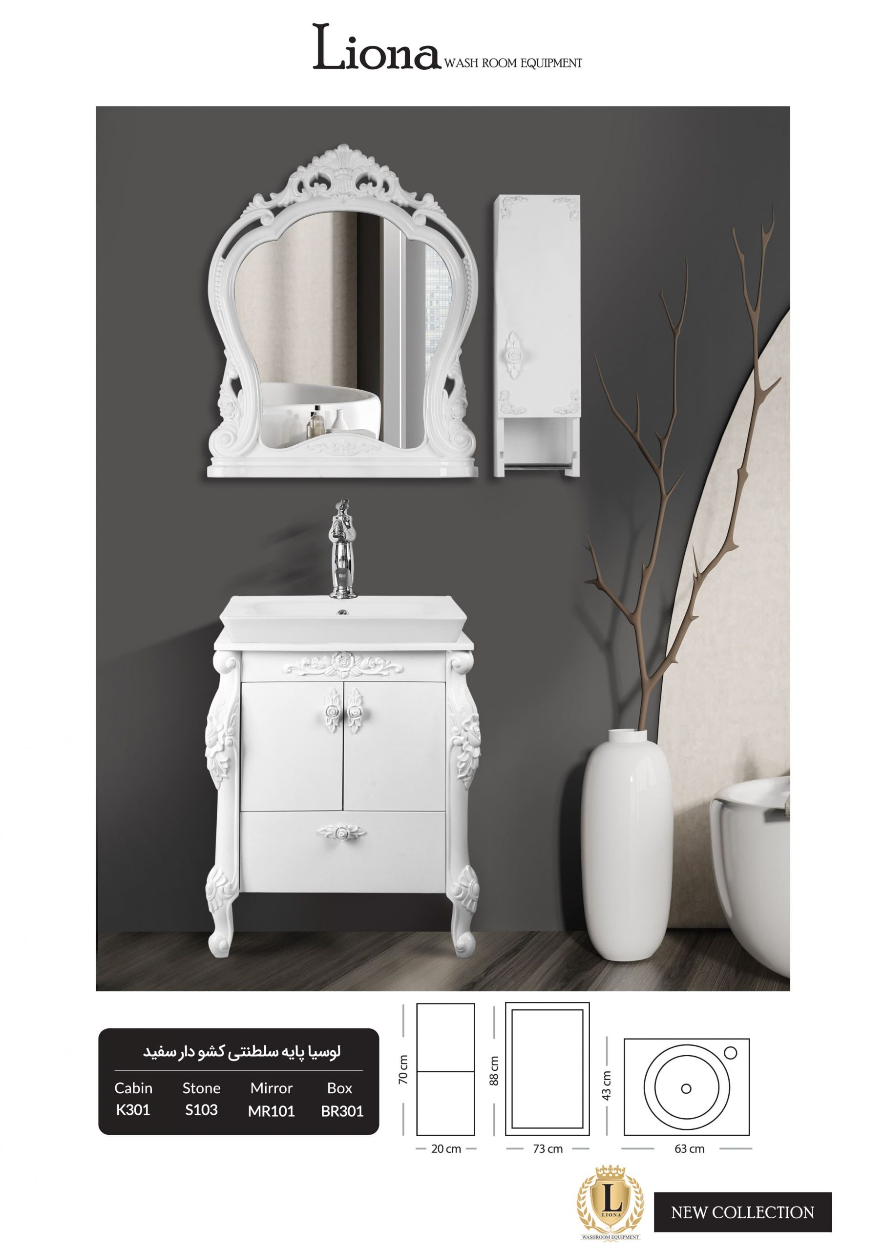 کابینت روشویی لیونا پایه سلطنتی ثابت سفید