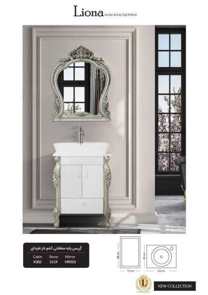کابینت روشویی گریس پایه سلطنتی کشودار نقره ای