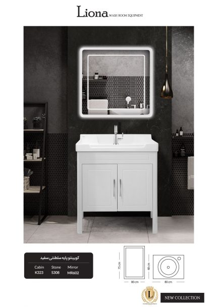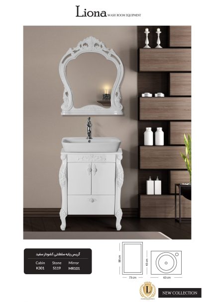 کابینت روشویی لیونا پایه سلطنتی ثابت سفید