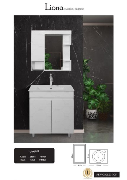 کابینت روشویی لنو نوار نقره ایی سفید طوسی دیواری