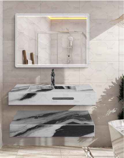 کابینت روشویی GL10 درب ریلی دیواری سفید آنتیک