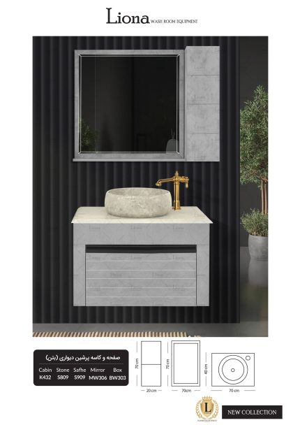 روشویی سنگی ال طبقه دار با کاسه لاستیکی پرشین
